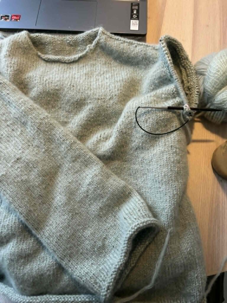 Min dag starter med en iskaffe og mit nuværende strikkeprojekt – nemlig Cloud sweateren. Jeg er lige begyndt på det andet ærme, så den nærmer sig enden.