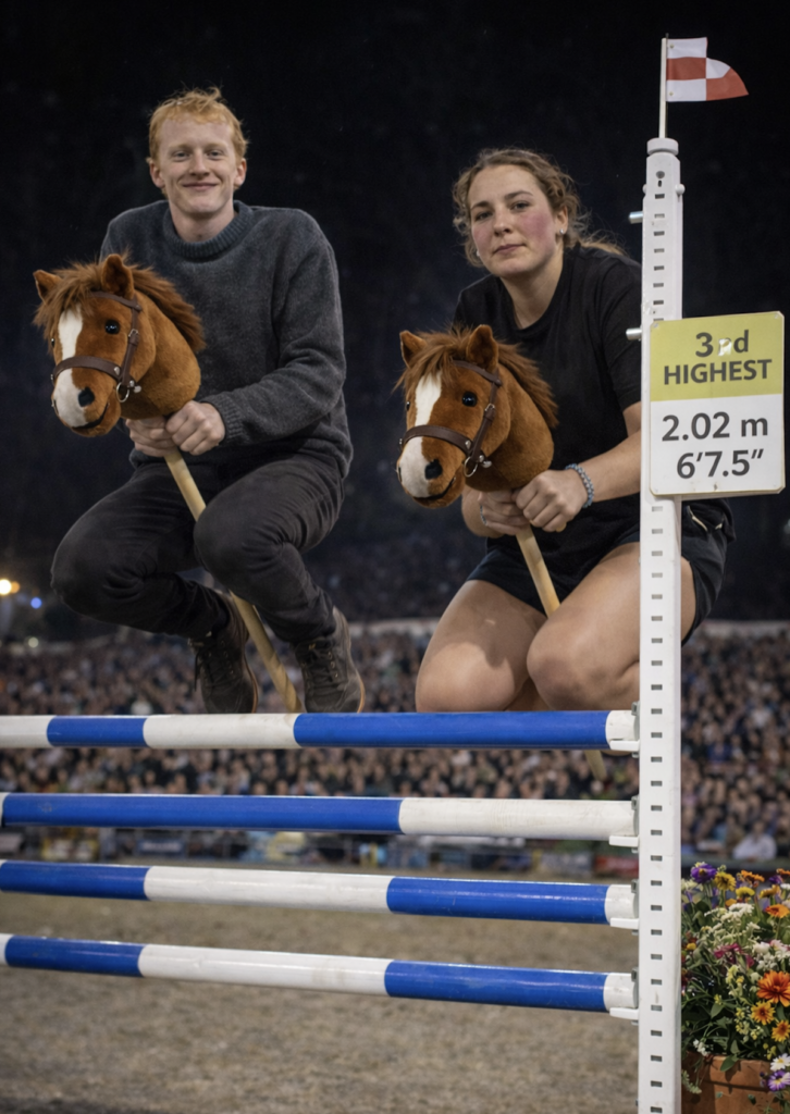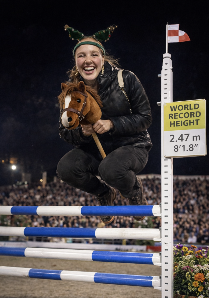 Maja på Misse, springer verdens højeste spring Ingen havde troet det, da Maja på Misse indtog 1. pladsen til VM, der blev afholdt i Vejle d. 27. december 2025. Maja og Misse var på hjemmebane, og dette kunne tydeligt mærkes i deres flotte præstation. Der var kamp om 2. og 3. pladsen mellem Anna og Simon. Simon var dog uheldig og vred om i sine fine sko, lige inden springet, og det førte til en 3. plads for ham og Kim. Anna og Flemming indtog en flot 2. plads.