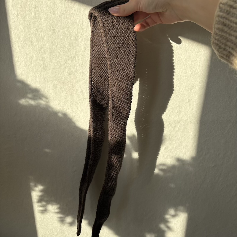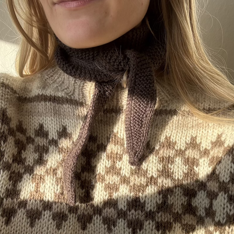 Tørklædet er strikket med Sandnes Cashmere, som er et let og blødt garn med en løbelængde på 110 m pr. 25 g.