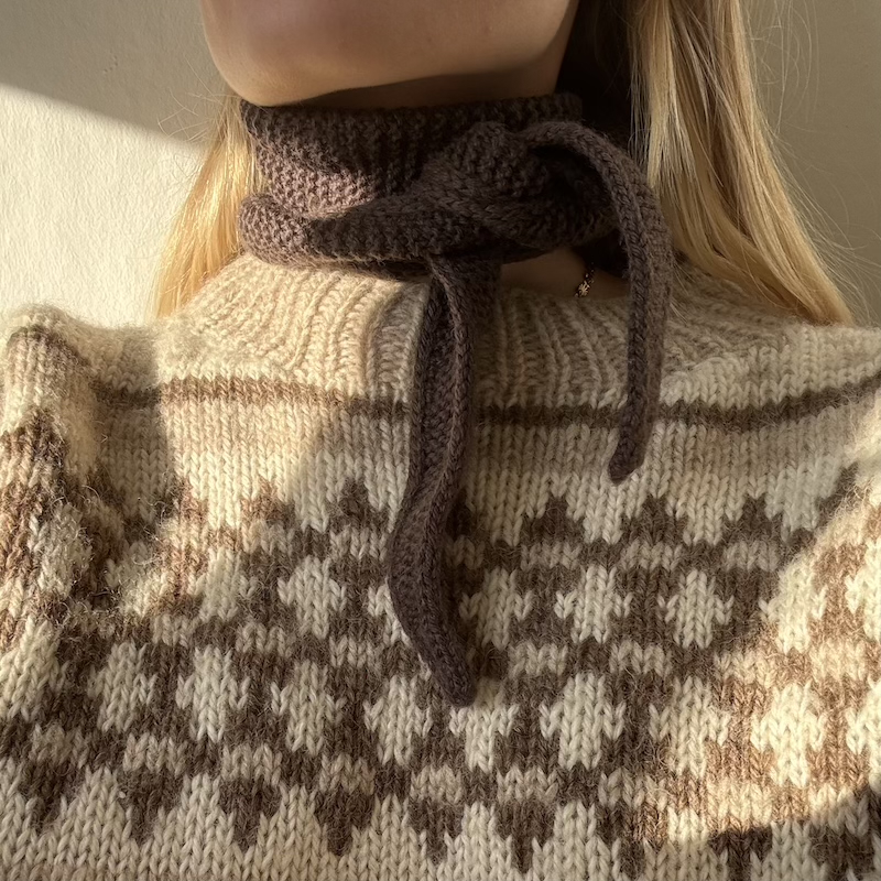 Det anbefales at lave en strikkeprøve og vaske/blokke den før måling for at sikre det endelige udtryk og fald.